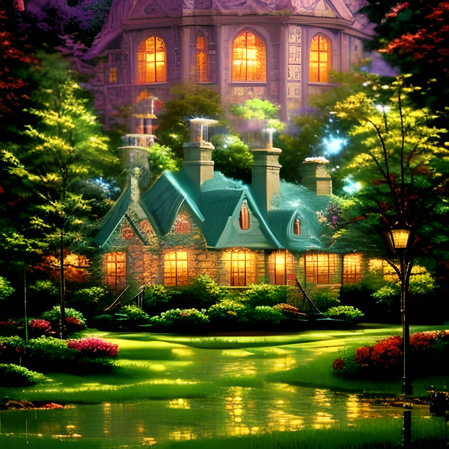 Luz y color vibrantes: Kinkade bañaba sus obras en una iluminación brillante y utilizaba colores vivos para crear una atmósfera alegre y optimista.
