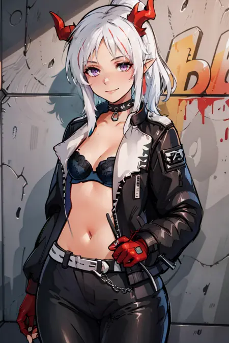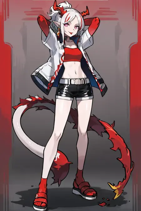 기본 옷차림 - 벨트, 흰 코트, 빨간 밴도, 검은 반바지,