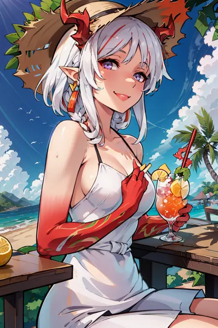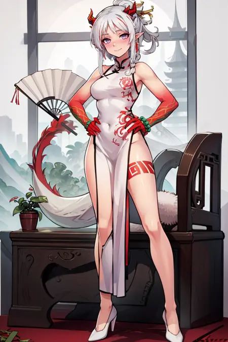 자유로운 상태 - 중국 드레스, 중국 옷, 소매 없는 드레스, 흰 드레스, 땋은 머리, 색깔 있는 피부, 귀 관통, 귀걸이, 보석,