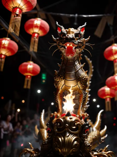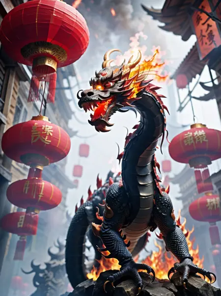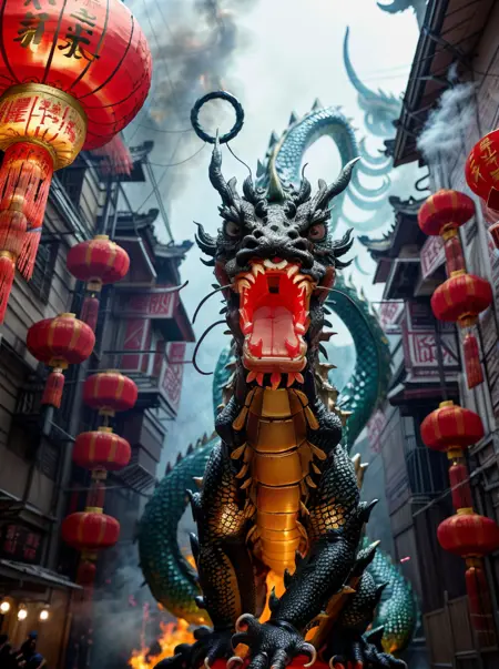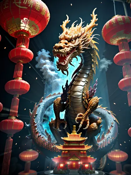 📝🌟 触发词:lunarNewYear2024quiron, 龙, 红灯笼, 尖牙, 尾巴,