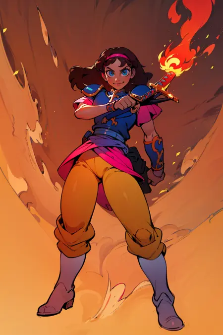 어떤 이유에서인지, 이 모델은 (아래에서 올려다보는 시점)을 좋아합니다. 이상한 검이 나오지 않도록 부정 프롬프트에 포함시키고 원하는 각도를 명시하세요. 가중치는 보통 0.9 정도가 적절합니다.