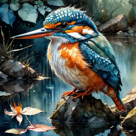 流れるようなエレメント:hyperkraximalismは、水や雲、葉を連想させる流れるようなエレメントを画像にシームレスに統合します。これらのダイナミックな要素は、非現実的で魅惑的な効果を生み出します。