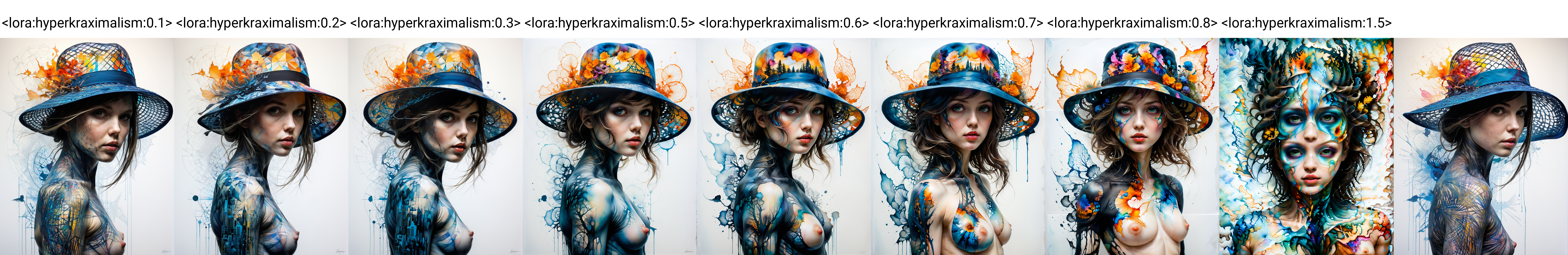 Subtle Enhancement: Even at a minimal setting (e.g., 0.1), hyperkraximalism significantly enhances images, making them more captivating and thought-provoking. Recommended max ~0.8