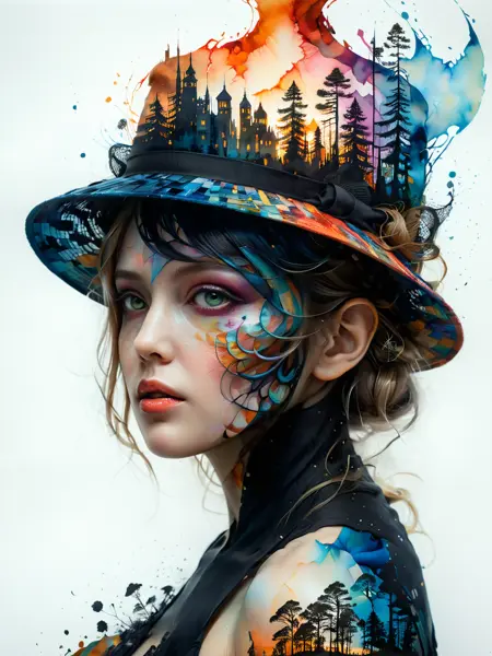 Versatility: While hyperkraximalism excels in transforming landscapes and sci-fi scenes, it also lends portraits a peculiar and intriguing style. Additionally, it can enhance double exposure images, adding an extra layer of complexity.