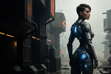データセット: サイボーグや一般的なSFテクノロジーの写実的・映画的ショットで、より「本物らしい」美的感覚を備えたもの。