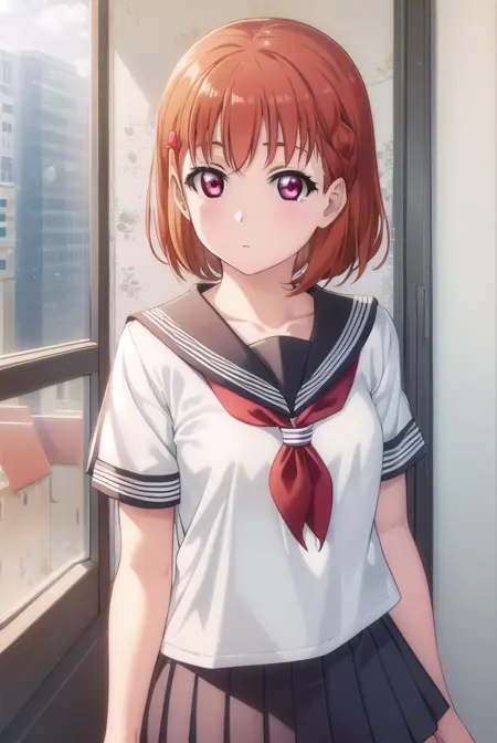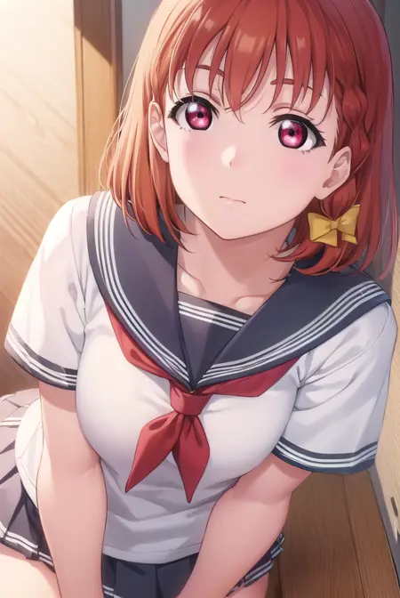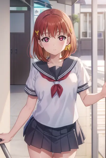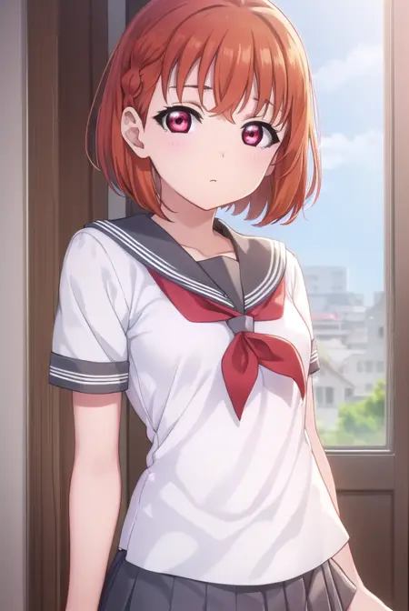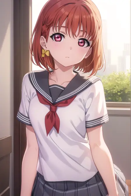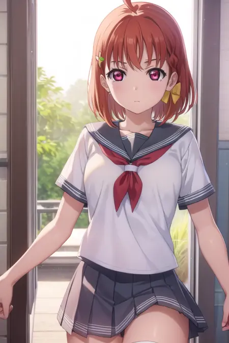 スカート、学制服、短袖、プリーツスカート、serafuku、靴下、ネクタイ、膝丈靴下、黒い靴下、赤いネクタイ、グレーのスカート、uranohoshi学制服、