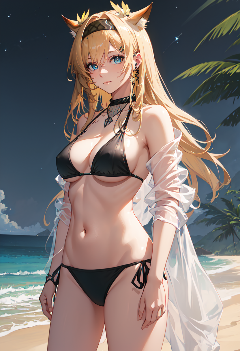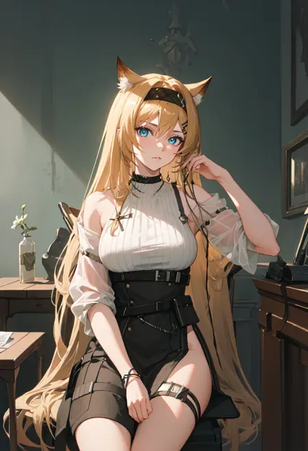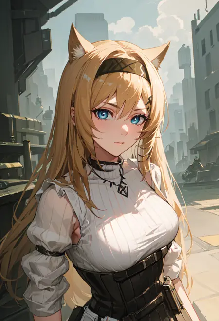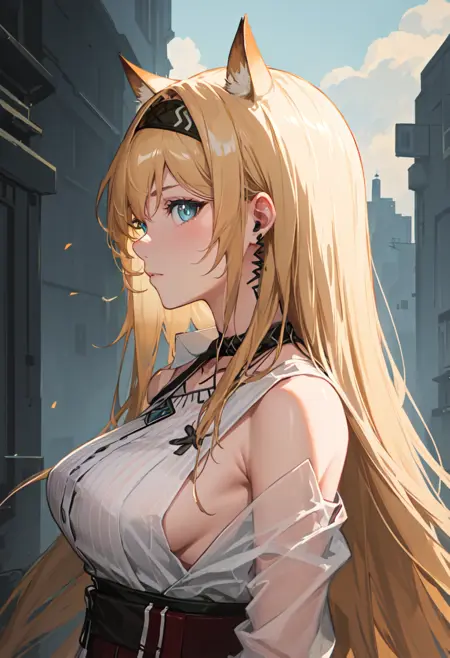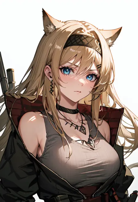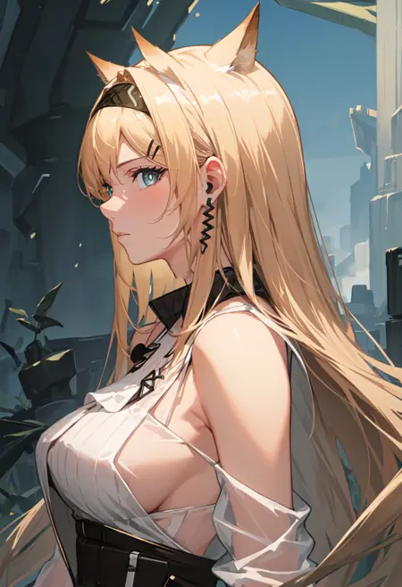 - The pruned character tags are animal ears, long hair, wolf ears, hairband, blonde hair, black hairband, breasts, large breasts, very long hair, animal ear fluff, blue eyes, green eyes, wolf girl. You can add them into prompts when core features (e.g. hair color) of character is not so stable.
