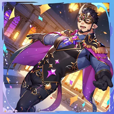 | 학습된 단어 | Nessen Mochizukin, LAHNessen, red eyes, black hair, short hair, sideburns, facial hair, chinstrap beard, jawline beard, pointy ears, fangs, horns, broken horn, 복사됨! LAHNessen_outfit01, sansuke outfit, Japanese clothes, blue headband, blue happi, sleeves rolled up to shoulder, red tasuki, bandaged forearms, bandaged hands, red girdle, white fundoshi, rokushaku fundoshi, legs armor, black tabi, waraji, straw sandals, wrist beads,복사됨! LAHNessen_outfit02, ryokan manager outfit, light-blue collared shirt, long sleeves shirt, blue striped necktie, red Hanten, black pants, black shoes복사됨! LAHNessen_outfit021, ryokan manager outfit, white collared shirt, brown checked necktie, blue Hanten, black pants, black shoes복사됨! LAHNessen_outfit03, glasses, black-framed eyewear, white shirt, white/black ringer shirt, short sleeves, denim shorts, black casual shoes복사됨! LAHNessen_outfit04, festival costume, Moonlight Shadow Nessen, black eye mask, indigo collared shirt, black vest, purple cravat, black/purple cape, black gloves, black pants, thigh strap, black boots복사됨! LAHNessen_outfit05, Japanese new year costume, black eye mask, brown undershirt, checked kimono, brown kimono, black haori, haori himo \(japanese clothes\), brown hakama, brown boots,복사됨! |