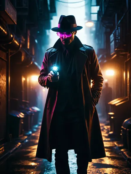 for this LoRA I tried to combine the dark noir style with a cyberpunk neon look.