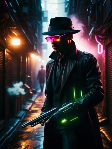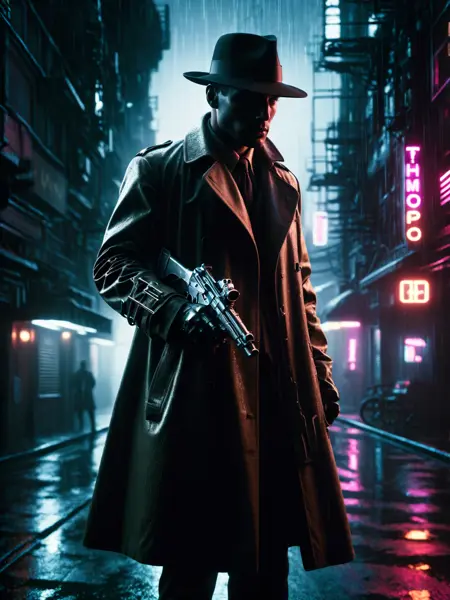 for this LoRA I tried to combine the dark noir style with a cyberpunk neon look.