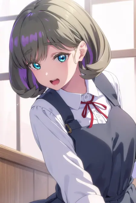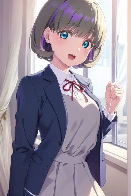 keke tang, short hair, blue eyes, grey hair, multicolored hair, streaked hair,