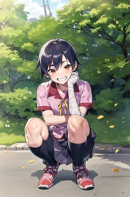 Kanbaru Suruga(来自《物语系列》)的LoRA模型。预览图使用了0.8的权重。该模型在权重为1时仍能正常工作,但使用稍低的权重效果更佳。