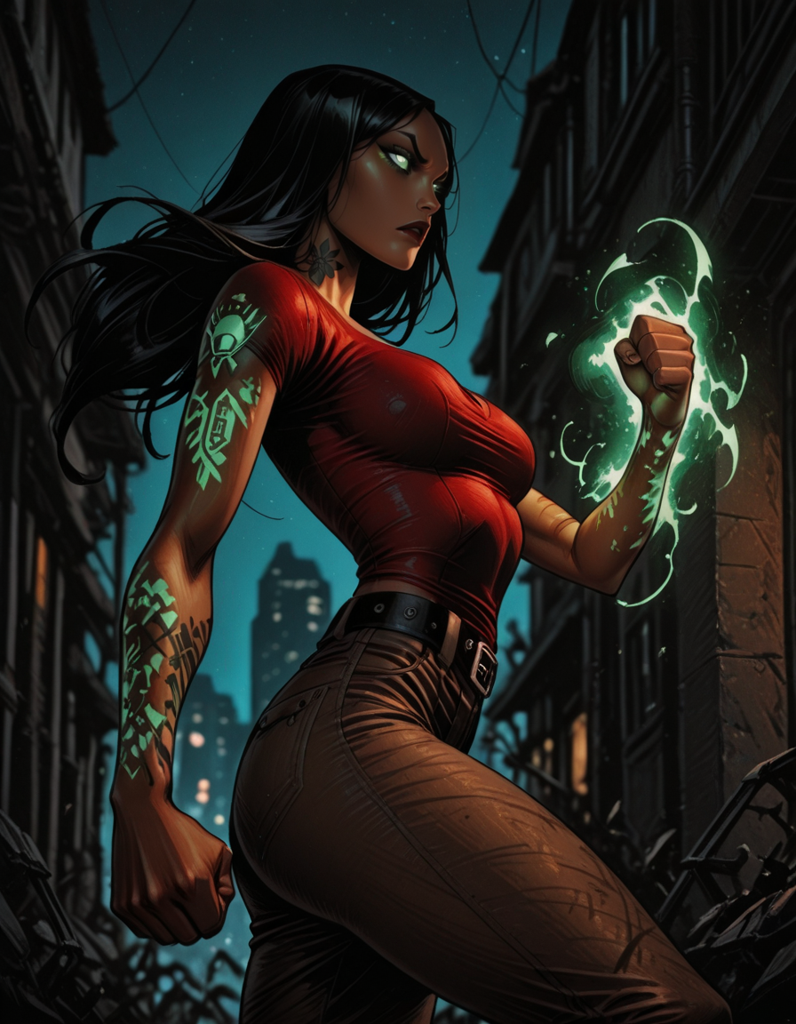 このキャラクターを描くのは楽しかったです!私の他のモデルほど露出は多くないですが(笑)、彼女の魔法の剣と輝くタトゥー、そして目を持つ力が本当に気に入りました!それに、彼女のキャラクター自体もとても興味深いです!60枚以上のデータセットを使って作成しました。皆さんのご意見をお聞かせください!