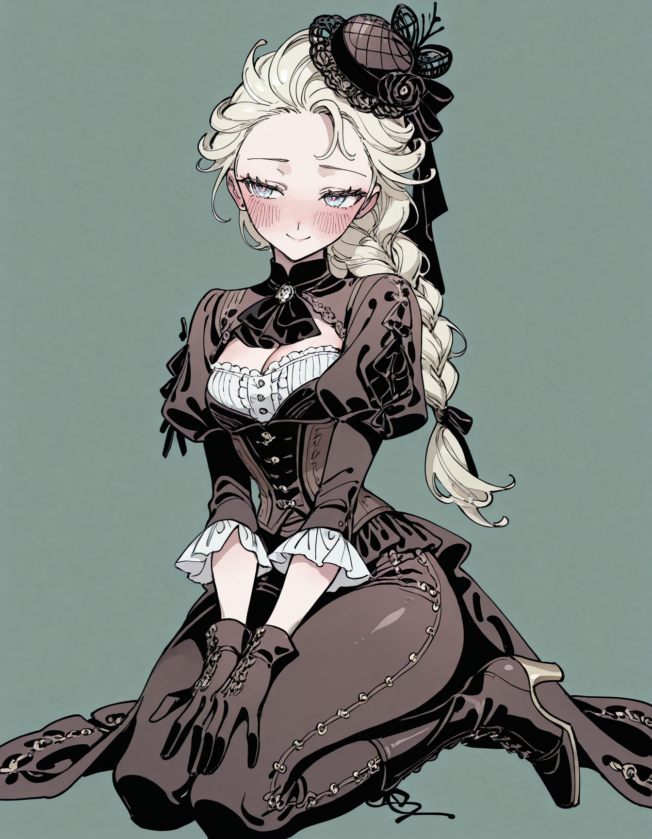 r1d3r, jacket, gloves, high collar, hips, pants, cuffs, corset, high heel boots, ascot, puffy sleeves, frills