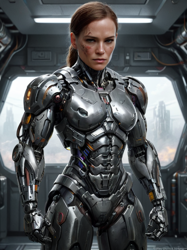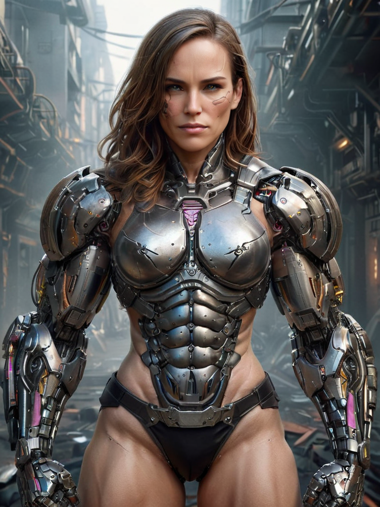 Trained on somewhat Jennifer Garner lookalike style cyborg pictures made with Midjourney.
