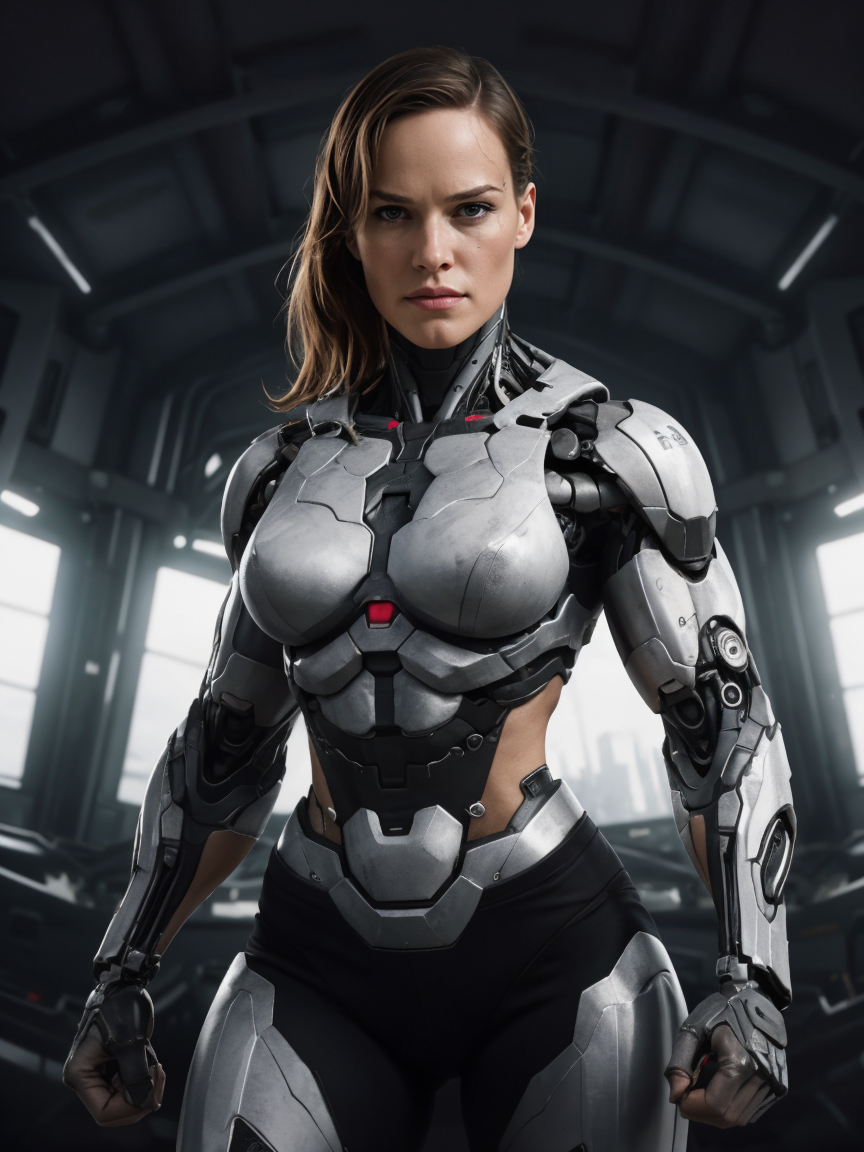 Trained on somewhat Jennifer Garner lookalike style cyborg pictures made with Midjourney.