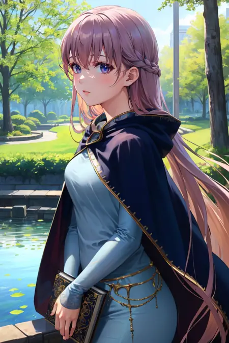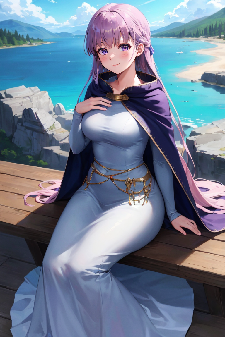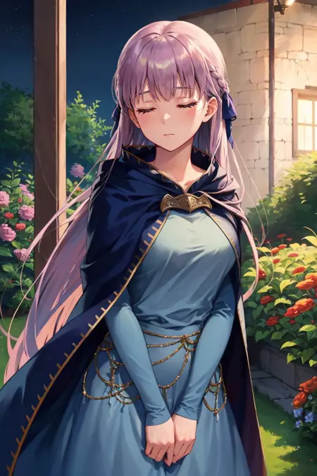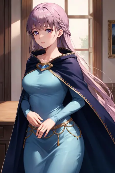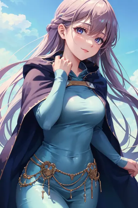 On the off chance you get inconsistencies (shouldn't happen) you can try some of the following tags: long sleeves, dress, jewelry, very long hair, collarbone, braid, cape, blue dress, cloak, (belly chain:0.6)