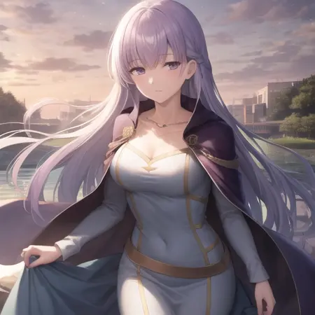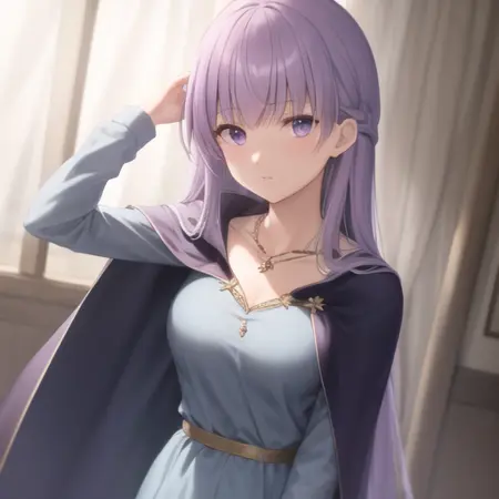万が一不整合が発生した場合(発生しなくなるよう設計されていますが)に、以下のタグを試すとよいでしょう:long sleeves、dress、jewelry、very long hair、collarbone、braid、cape、blue dress、cloak、(belly chain:0.6)
