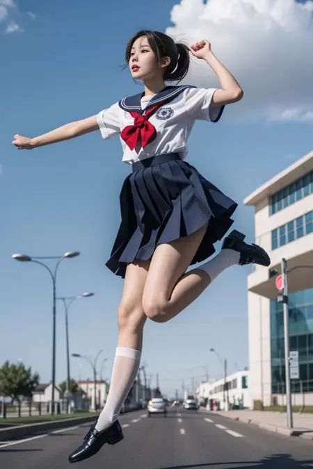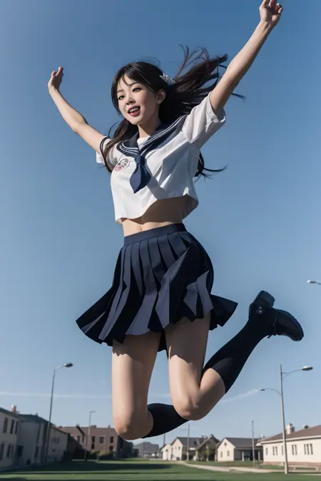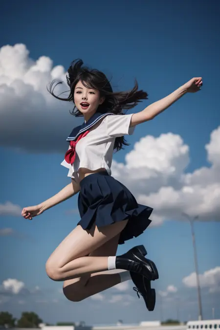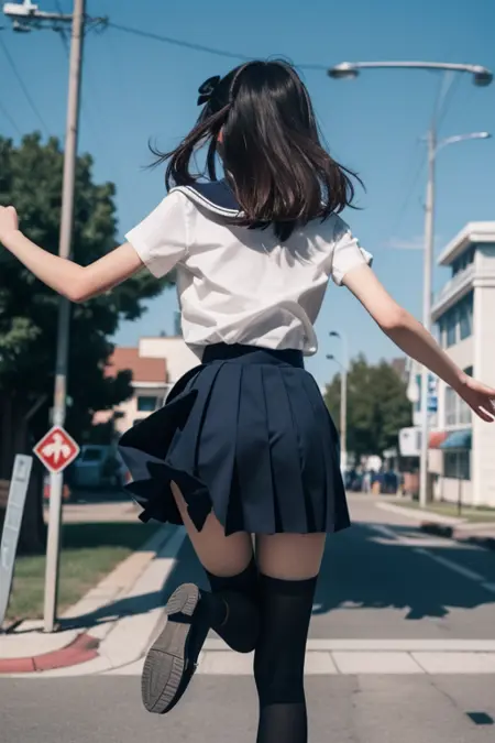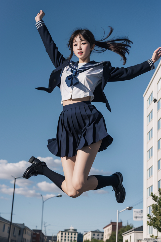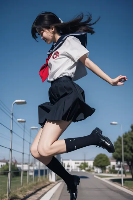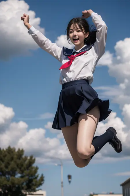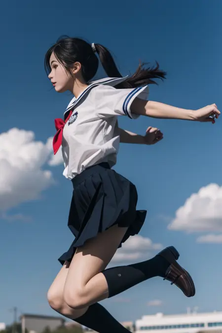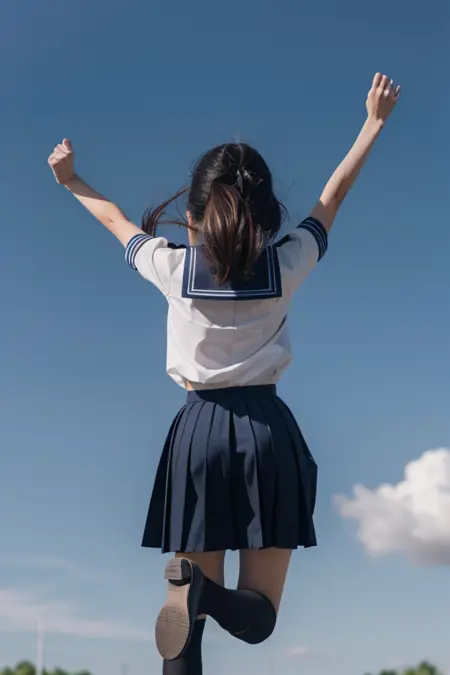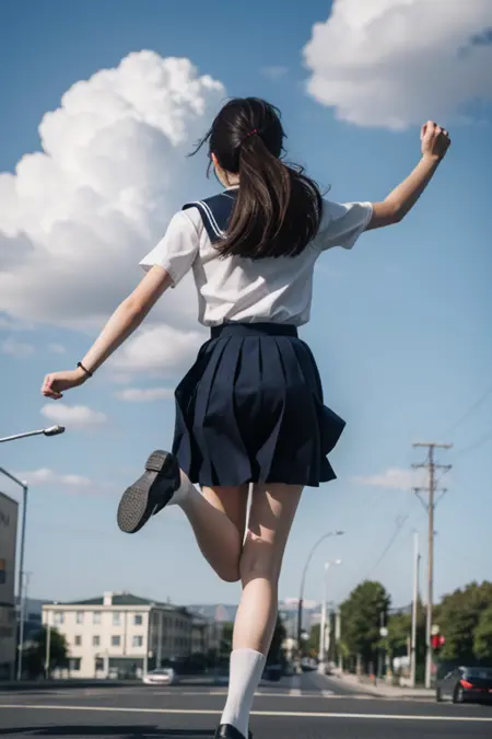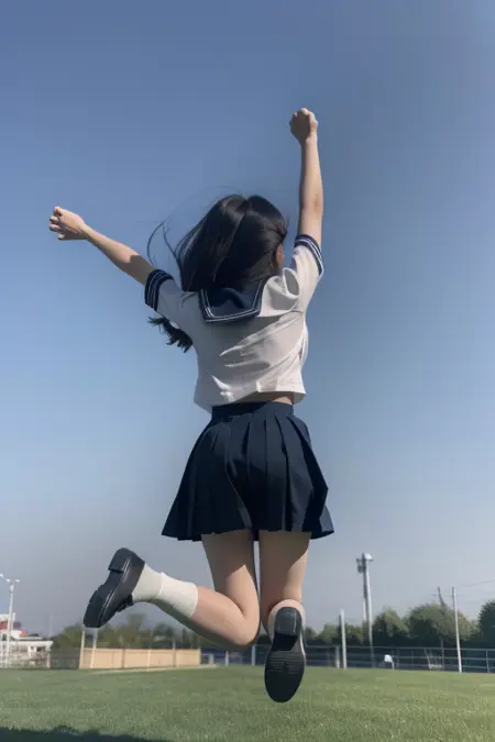 这是一个简单跳跃动作,源图大多是从背后拍的照片,如果要出正面图需要加大分辨率或重绘