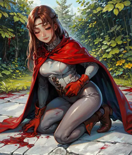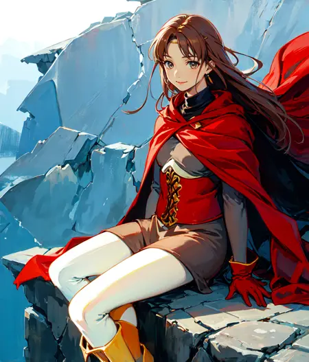 显著标签:棕色头发、长发、头环、裤子、斗篷、盔甲