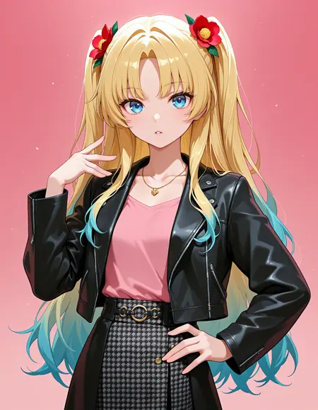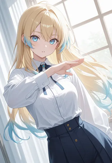 multicolored hair, blue hair, blue eyes, blonde hair, two side up, long hair, rrnosw