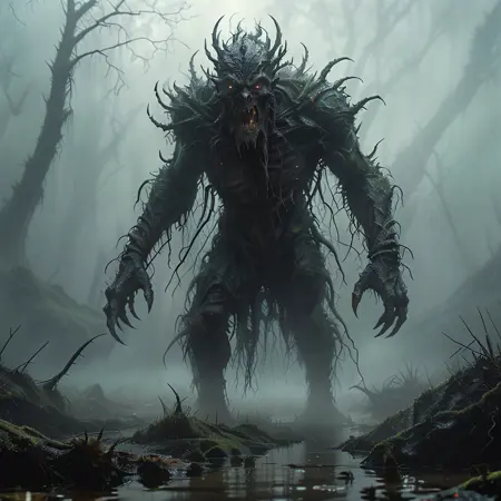 伟大的高耸巨兽乌特卡拉尔来自大地与黑暗层面之间的土地。它高大挺立,全身布满尖刺,散发着煤烟与硫磺的气味,但最令人恐惧的是其巨大的爪子、尖刺和牙齿。