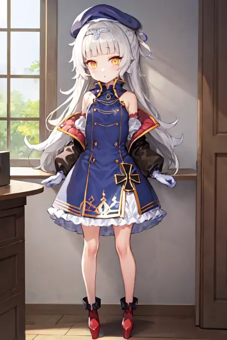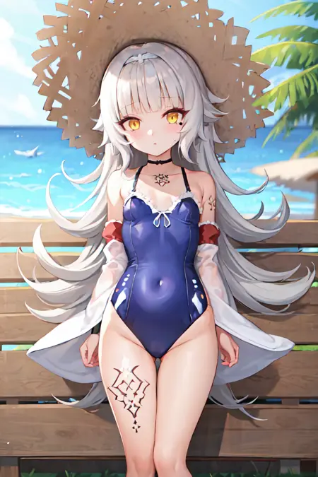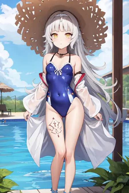 Z46 from the game Azurelane in her basic outfit and her Swimsuit.