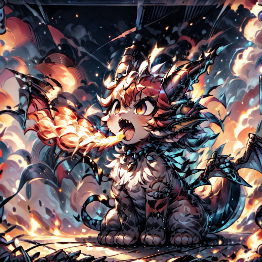I couldn't find a Lora about dragons breathing fire so here it is.