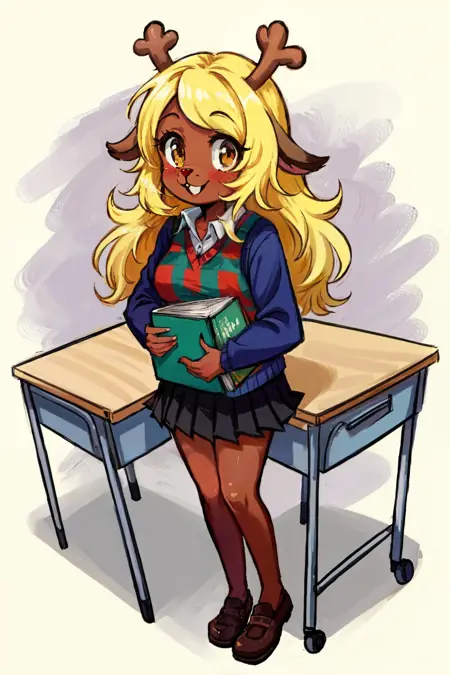 添加细节有助于提升效果(例如:Kris 的毛衣类型)