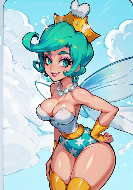 - Invocation word 1.5 model : "ToothFairyOG", helpful prompts: "aqua hair, short hair, medium breast, crown, necklace, leotard, wings, boots, dress, jewelry, cartoon, fairy wings"