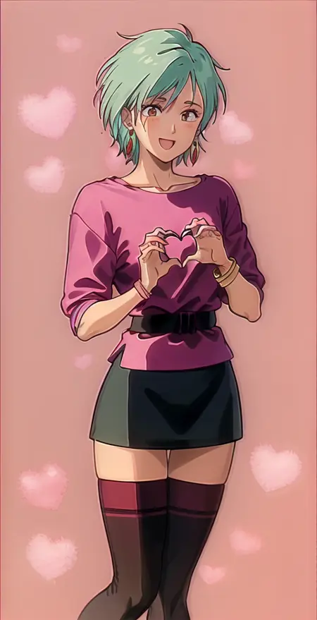 Main outfit, "shirt, elbow sleeves, belt, skirt, thighhighs, earrings, bracelet"