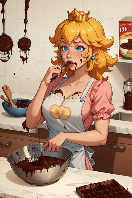 打蛋器,围裙,脸上有食物,厨房,身上有巧克力