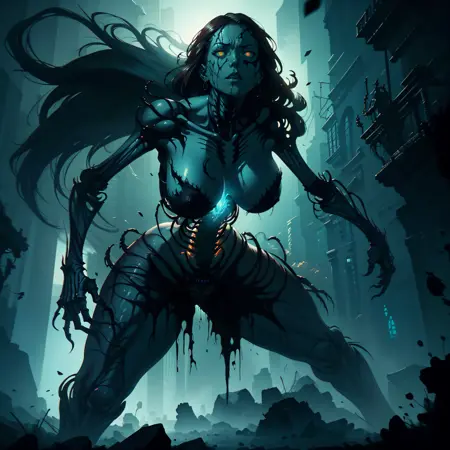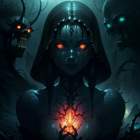 24枚の画像を使って学習させた暗黒ファンタジー風のエンベディング。なかなか良い出来上がりで、トリガーワードなしでそのまま使用するだけで結果が得られます。また、「風景、森、自然、雪、屋外、発光、木、水、廃墟、暗い」といったワードを加えると、非常に良い結果が得られます。