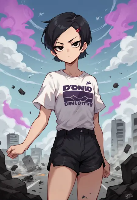 Prompts are : Zenko, 1girl, black hair, hair ornament, hairclip, black eyes, short hair