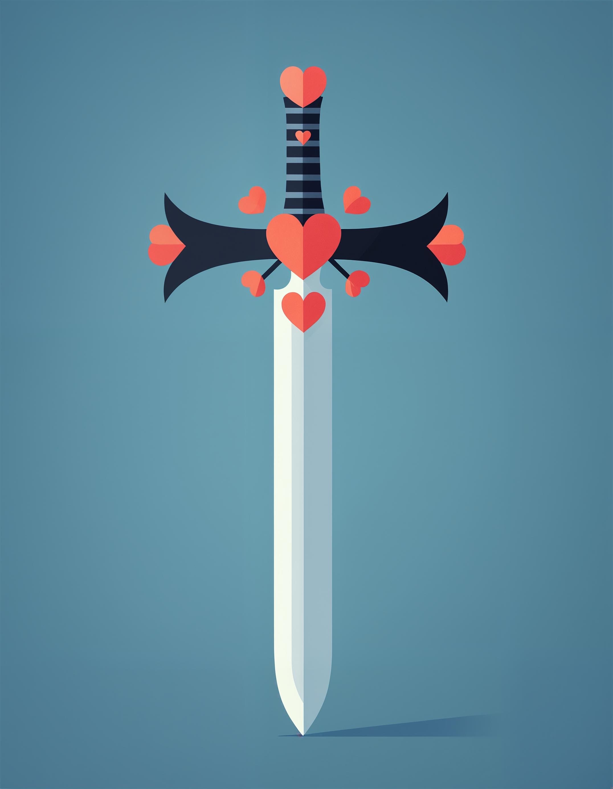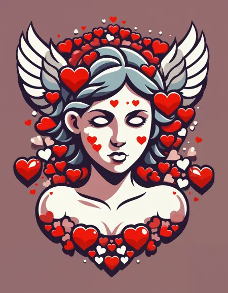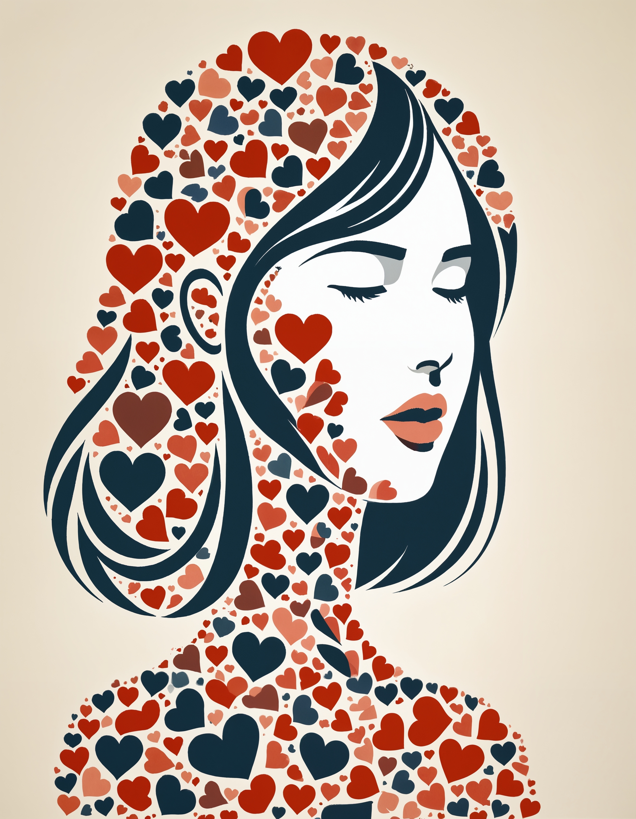 A flat art style that inserts hearts to form the depiction, either fully or part of the depiction. Creates very interesting negative space logos or other artful works.