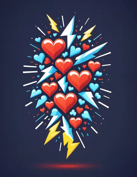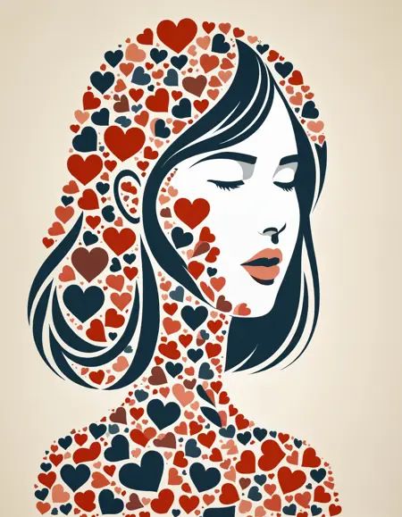 심장을 삽입하여 전체 또는 부분적으로 이미지를 구성하는 평면 아트 스타일입니다. 매우 흥미로운 네거티브 스페이스 로고 또는 기타 예술적 작품을 생성합니다.