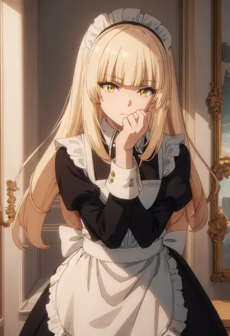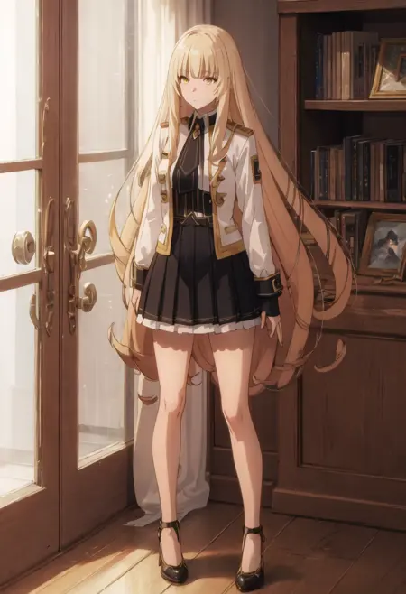 - 精简后的角色标签为:long_hair、blonde_hair、bangs、yellow_eyes、blunt_bangs。当角色的核心特征(例如发色)不够稳定时,您可在提示词中添加这些标签。
