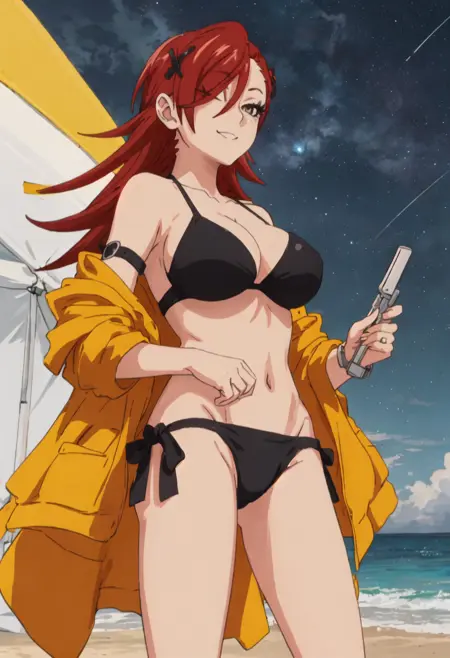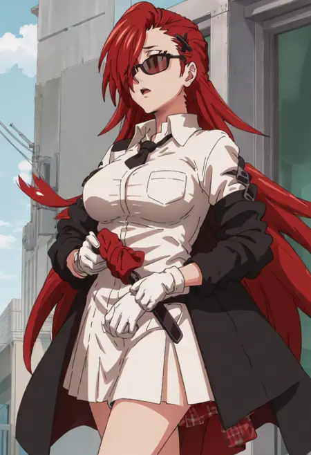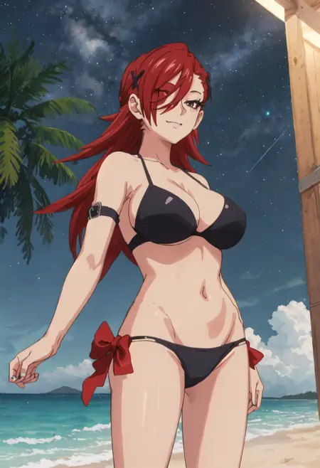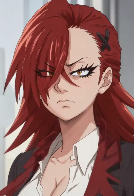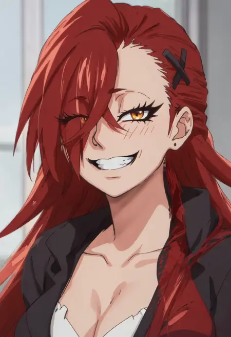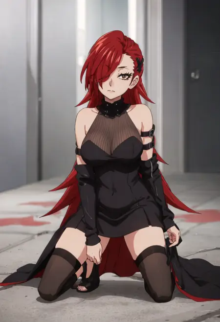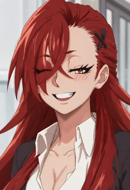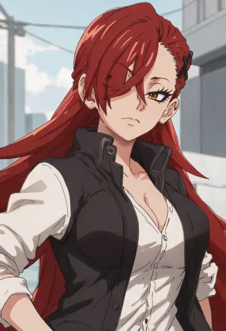- The pruned character tags are red_hair, long_hair, hair_over_one_eye, hair_ornament, breasts, large_breasts. You can add them into prompts when core features (e.g. hair color) of character is not so stable.