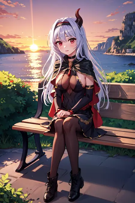 Tags: prisc, hair bow, hairband, dress, elbow sleeve, capelet, demon horn, pantyhose