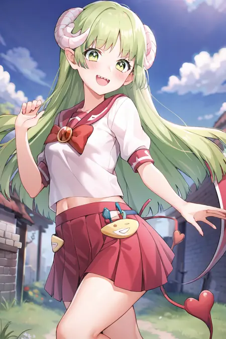 Iruma-kun のメイン衣装を着た Clara を生成します。自然と、LORAに笑顔を付け加え、明るく楽しい雰囲気にしていたのですが、もちろんプロンプトで調整可能です(その例としていくつか画像を紹介しています)。ただ、テレビで見せる彼女の悲しげな様子を見るのは苦手なので、基本的には「幸せ」をデフォルトにしました :).
