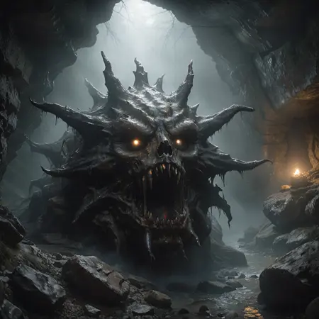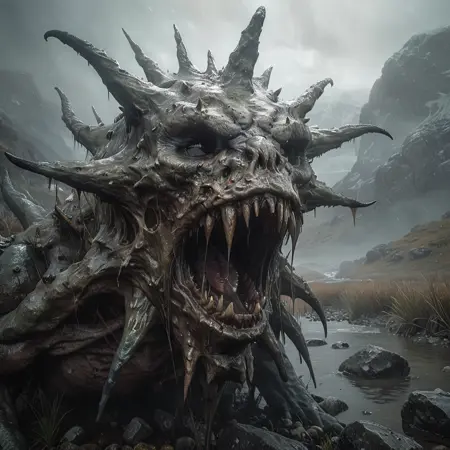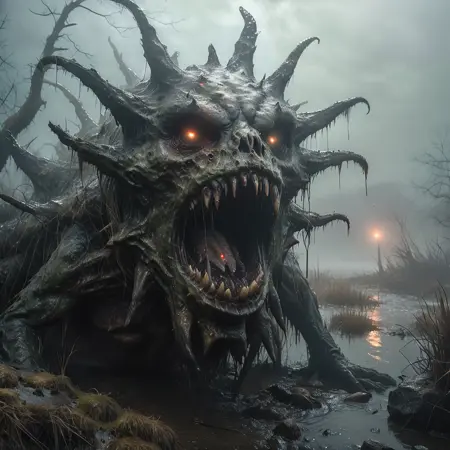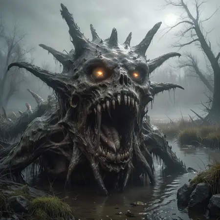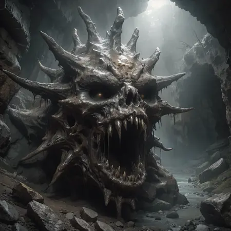 Fendweir是一种邪恶存在,潜伏在空间中,等待更多死亡与邪恶的诞生。当大量死亡中积聚了足够的邪恶时,这种恶灵便会从死者的骸骨中凝聚成形,呈现出一张奇异的星状面容,拥有巨大的口器和两只深邃的眼睛。当它移动时,会发出骨骸与石头拖行般的声响,并伴随一阵如风般的哀嚎,直到它找到猎物为止。