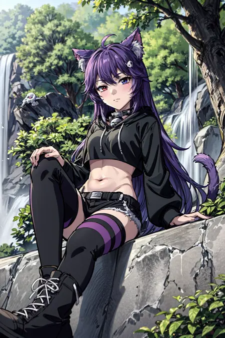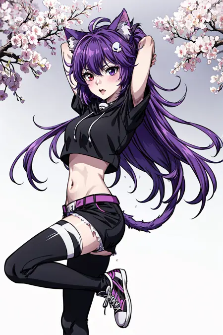totless: 고양이소녀, 이색안색, 긴 머리, 진한 보라색 머리, 동물 귀 털