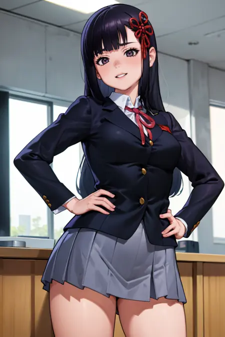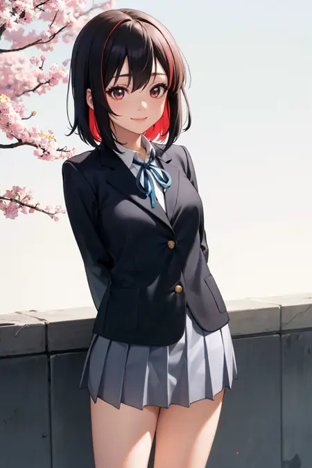 SakuragaokaWinter, sakuragaoka high school uniform, blazer, long sleeves, neck ribbon, grey skirt