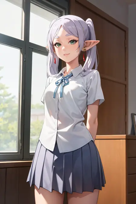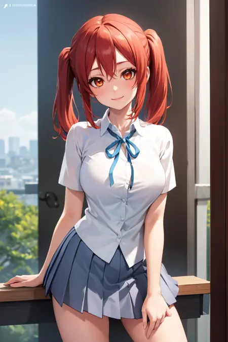 SakuragaokaSummer, sakuragaoka high school uniform, white shirt, neck ribbon, short sleeves, grey skirt