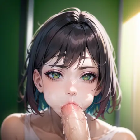 您可以尝试使用 "deepthroat"、"irrumatio"、":>="、"deepthroat"_、"cum in mouth"、"saliva"、"pov"、"from above"、"from side"(或不指定镜头角度以获得某种正面/侧面视角)。