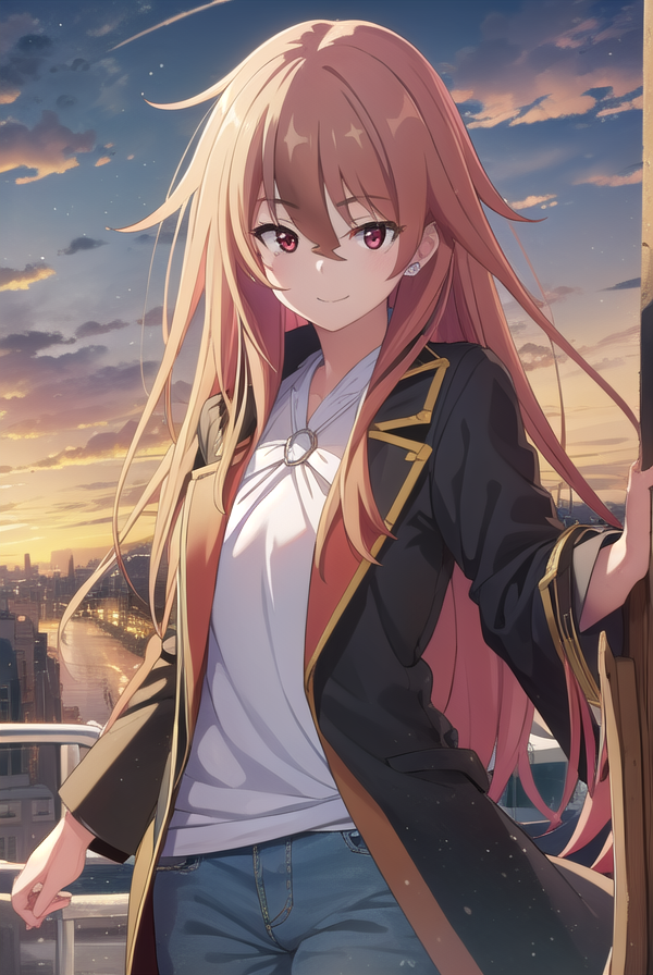 셔츠, 긴 소매, 보석, 흰 셔츠, 귀걸이, 바지, 코트, 벌어진 코트, 검은 코트, 청바지,
