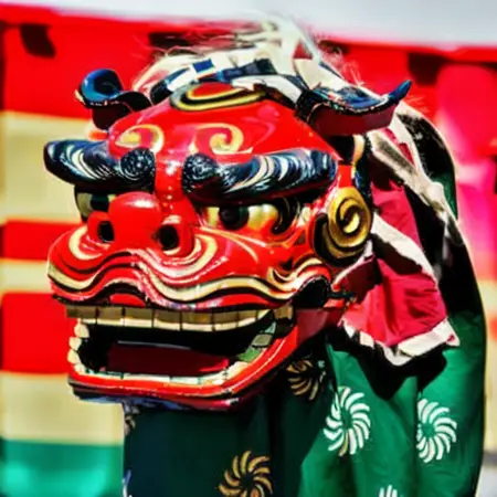 The Chinese lion dance has a long history of more than a thousand years and is performed by two performers to bring good luck and ward off evil spirits. One person controls the lion's head, while the other controls the lion's body and tail. The lion's body is adorned with fur decorations reminiscent of waves, and the lion's head is covered with colorful, fluffy fur, characterized by its large eyes.