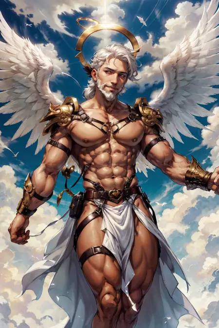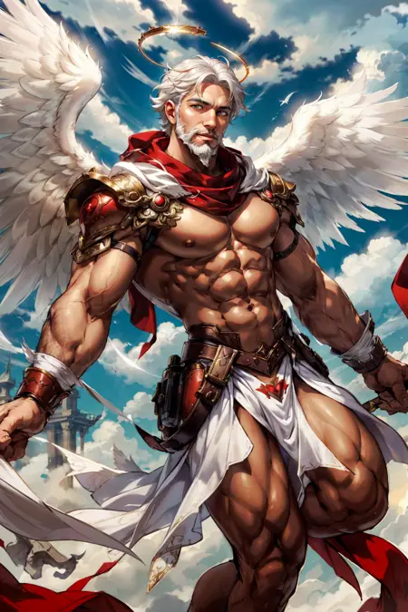 Additional tags: wings, flying, halo, harness, heart, armor, robes, scarf
