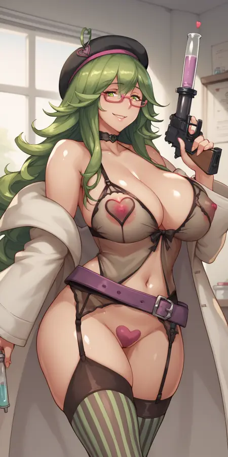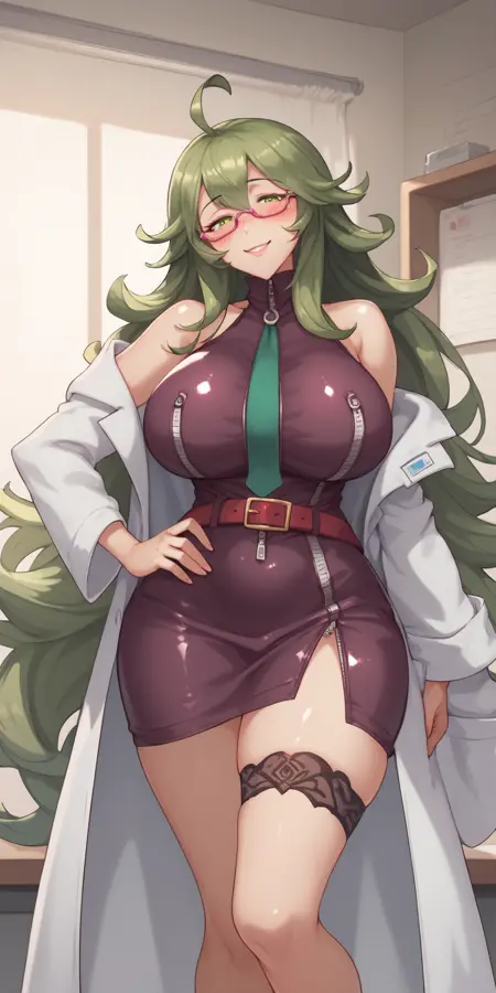 Main tag: clara,green hair,green eyes,short/very long hair, glasses.
