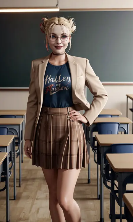 Tends to default to her main in-game outfit, although you can get other results at lower weights.
